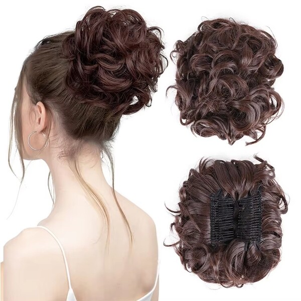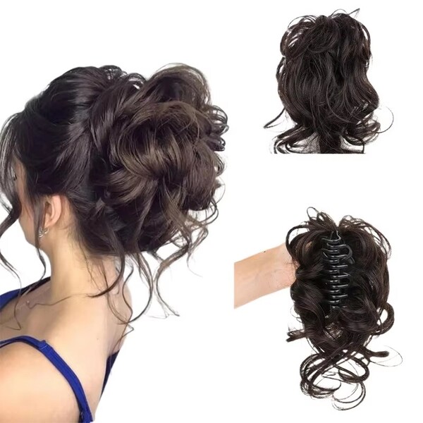 2Pcs Messy Hair Bun Wig Claw Clips