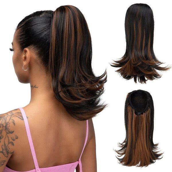 3Pcs Womens Clip In Drawstring Synthetic Ponytail Wig